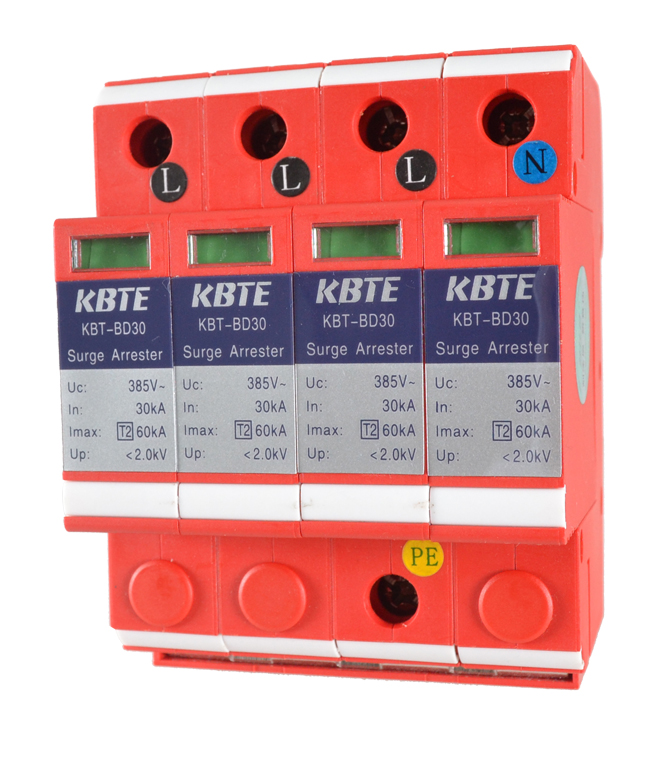 KBT-AD、KBT-BD及KBT-CD系列三相电源防雷模块,适合TT、TN—C、TN—C—S、IT等各种电网制式。该系列电源防雷模块并联安装在电源线路上,不影响电源线路的正常工作。模块式设计,体积小,35mm标准导轨安装,可安装在各种电源柜、开关箱和其它电气设备内。