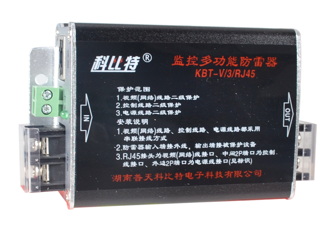三合一监控多功能防雷器用于带云台摄像机,RJ45接口的监控多功能防雷器用于网络摄像机和高清摄像机,保护摄像机的电源、视频及控制线路免受雷击和过电压的损害。监控多功能防雷器安装在监控系统前端的摄像机尾部,位置与摄像机越近越好,原则上0.5M距离内,并做好接地处理。